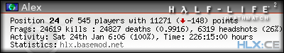 | Rank | Server | Kills | % | Ratio | Deaths | K:D | Headshots | Percentage of Headshots | % | HS:K |