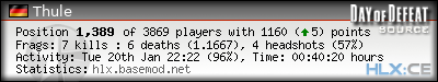 | Rank | Server | Kills | % | Ratio | Deaths | K:D | Headshots | Percentage of Headshots | % | HS:K |
