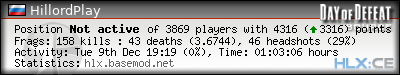 | Rank | Server | Kills | % | Ratio | Deaths | K:D | Headshots | Percentage of Headshots | % | HS:K |