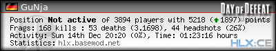 | Rank | Server | Kills | % | Ratio | Deaths | K:D | Headshots | Percentage of Headshots | % | HS:K |