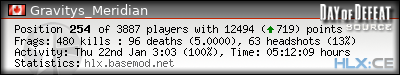 | Rank | Server | Kills | % | Ratio | Deaths | K:D | Headshots | Percentage of Headshots | % | HS:K |
