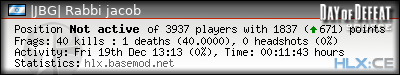 | Rank | Server | Kills | % | Ratio | Deaths | K:D | Headshots | Percentage of Headshots | % | HS:K |