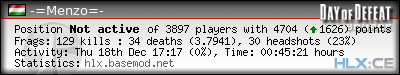 | Rank | Server | Kills | % | Ratio | Deaths | K:D | Headshots | Percentage of Headshots | % | HS:K |