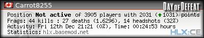 | Rank | Server | Kills | % | Ratio | Deaths | K:D | Headshots | Percentage of Headshots | % | HS:K |