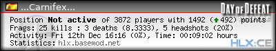 | Rank | Server | Kills | % | Ratio | Deaths | K:D | Headshots | Percentage of Headshots | % | HS:K |