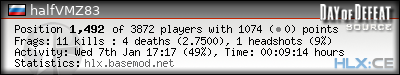 | Rank | Server | Kills | % | Ratio | Deaths | K:D | Headshots | Percentage of Headshots | % | HS:K |