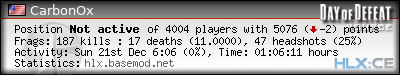 | Rank | Server | Kills | % | Ratio | Deaths | K:D | Headshots | Percentage of Headshots | % | HS:K |