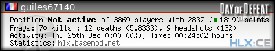 | Rank | Server | Kills | % | Ratio | Deaths | K:D | Headshots | Percentage of Headshots | % | HS:K |