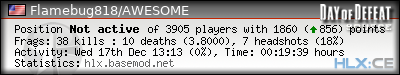 | Rank | Server | Kills | % | Ratio | Deaths | K:D | Headshots | Percentage of Headshots | % | HS:K |