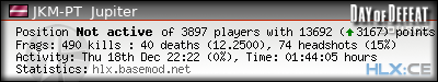 | Rank | Server | Kills | % | Ratio | Deaths | K:D | Headshots | Percentage of Headshots | % | HS:K |