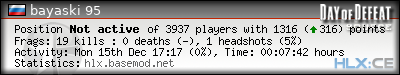 | Rank | Map | Kills | % | Ratio | Deaths | % | Ratio | K:D | Headshots | % | Ratio | HS:K |