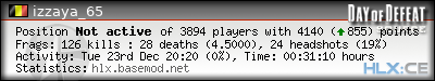 | Rank | Server | Kills | % | Ratio | Deaths | K:D | Headshots | Percentage of Headshots | % | HS:K |