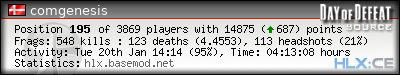 | Rank | Victim | Kills | % | Ratio | Deaths | % | Ratio | K:D | Headshots | % | Ratio | HS:K |