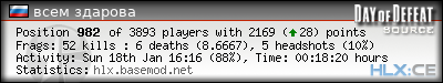 | 1 | »» 24/7 Sniper Server // by www.BASEMOD.net [EU] | 51 | 98.08% | 4 | 12.7500 | 4 | 80.00% | 0.0784 | ||