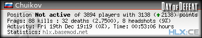 | Rank | Server | Kills | % | Ratio | Deaths | K:D | Headshots | Percentage of Headshots | % | HS:K |