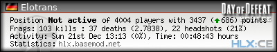| Rank | Server | Kills | % | Ratio | Deaths | K:D | Headshots | Percentage of Headshots | % | HS:K |
