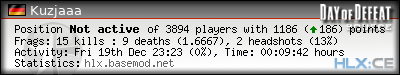 | Rank | Map | Kills | % | Ratio | Deaths | % | Ratio | K:D | Headshots | % | Ratio | HS:K |