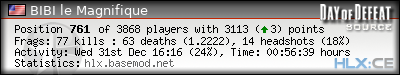 | Rank | Server | Kills | % | Ratio | Deaths | K:D | Headshots | Percentage of Headshots | % | HS:K |