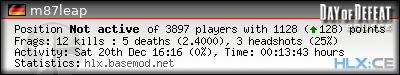 | Rank | Map | Kills | % | Ratio | Deaths | % | Ratio | K:D | Headshots | % | Ratio | HS:K |