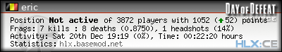 | Rank | Map | Kills | % | Ratio | Deaths | % | Ratio | K:D | Headshots | % | Ratio | HS:K |