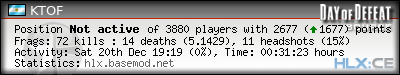 | Rank | Server | Kills | % | Ratio | Deaths | K:D | Headshots | Percentage of Headshots | % | HS:K |