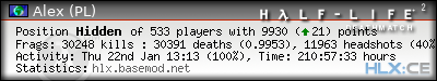 | Rank | Server | Kills | % | Ratio | Deaths | K:D | Headshots | Percentage of Headshots | % | HS:K |
