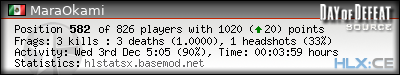 | Rank | Map | Kills | % | Ratio | Deaths | % | Ratio | K:D | Headshots | % | Ratio | HS:K |