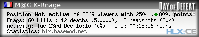 | Rank | Server | Kills | % | Ratio | Deaths | K:D | Headshots | Percentage of Headshots | % | HS:K |