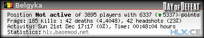 | Rank | Server | Kills | % | Ratio | Deaths | K:D | Headshots | Percentage of Headshots | % | HS:K |