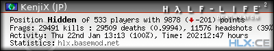 | Rank | Server | Kills | % | Ratio | Deaths | K:D | Headshots | Percentage of Headshots | % | HS:K |