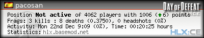 | Rank | Map | Kills | % | Ratio | Deaths | % | Ratio | K:D | Headshots | % | Ratio | HS:K |
