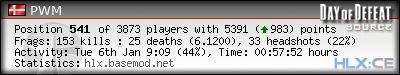 | Rank | Victim | Kills | % | Ratio | Deaths | % | Ratio | K:D | Headshots | % | Ratio | HS:K |