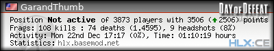 | Rank | Server | Kills | % | Ratio | Deaths | K:D | Headshots | Percentage of Headshots | % | HS:K |