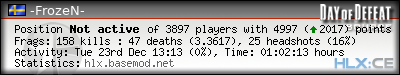 | Rank | Server | Kills | % | Ratio | Deaths | K:D | Headshots | Percentage of Headshots | % | HS:K |