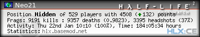| Rank | Server | Kills | % | Ratio | Deaths | K:D | Headshots | Percentage of Headshots | % | HS:K |