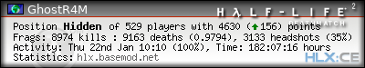 | Rank | Server | Kills | % | Ratio | Deaths | K:D | Headshots | Percentage of Headshots | % | HS:K |