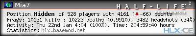 | Rank | Server | Kills | % | Ratio | Deaths | K:D | Headshots | Percentage of Headshots | % | HS:K |