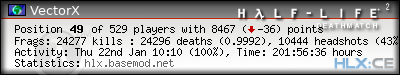 | Rank | Server | Kills | % | Ratio | Deaths | K:D | Headshots | Percentage of Headshots | % | HS:K |