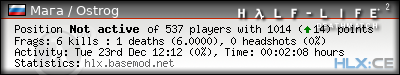 | Kills per Death: | 6.0000 (6.00*) | |