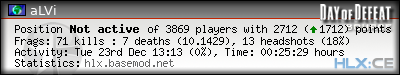 | Rank | Server | Kills | % | Ratio | Deaths | K:D | Headshots | Percentage of Headshots | % | HS:K |
