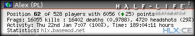 | Rank | Server | Kills | % | Ratio | Deaths | K:D | Headshots | Percentage of Headshots | % | HS:K |