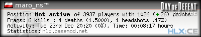 | Rank | Map | Kills | % | Ratio | Deaths | % | Ratio | K:D | Headshots | % | Ratio | HS:K |