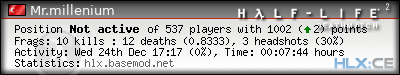 | Headshots per Kill: | 0.3000 (0.3000*) | |