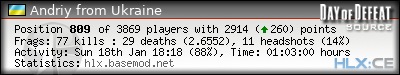 | Rank | Name | Time | Last Use | Kills | Deaths | K:D | Headshots | HS:K | Suicides | Accuracy |
