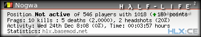 | Rank | Map | Kills | % | Ratio | Deaths | % | Ratio | K:D | Headshots | % | Ratio | HS:K |