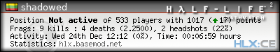 | Headshots per Kill: | 0.2222 (0.2222*) | |