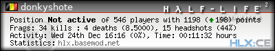 | Rank | Server | Kills | % | Ratio | Deaths | K:D | Headshots | Percentage of Headshots | % | HS:K |