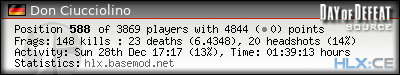 | Rank | Server | Kills | % | Ratio | Deaths | K:D | Headshots | Percentage of Headshots | % | HS:K |