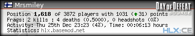 | Rank | Role | Joined | % | Ratio | Kills | Deaths | K:D |