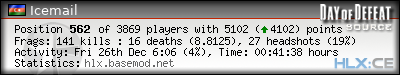 | Rank | Server | Kills | % | Ratio | Deaths | K:D | Headshots | Percentage of Headshots | % | HS:K |